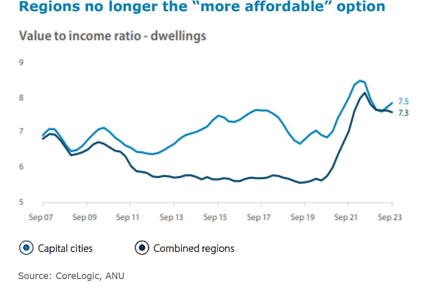 However, the surge in prices over the COVID lockdowns narrowed the price gap and this diminishing affordability undermines one of the key advantages regional markets had over metropolitan counterparts.
