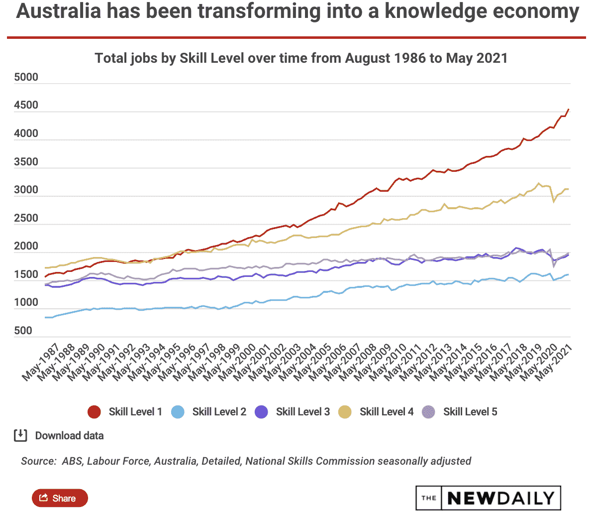 For example, in Australia for the last 50 years, half of the new jobs that we added to Australia required at least a university-level degree.