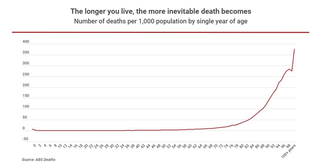 This, of course, is the older you get the more likely you are to die with the one exception of infants.