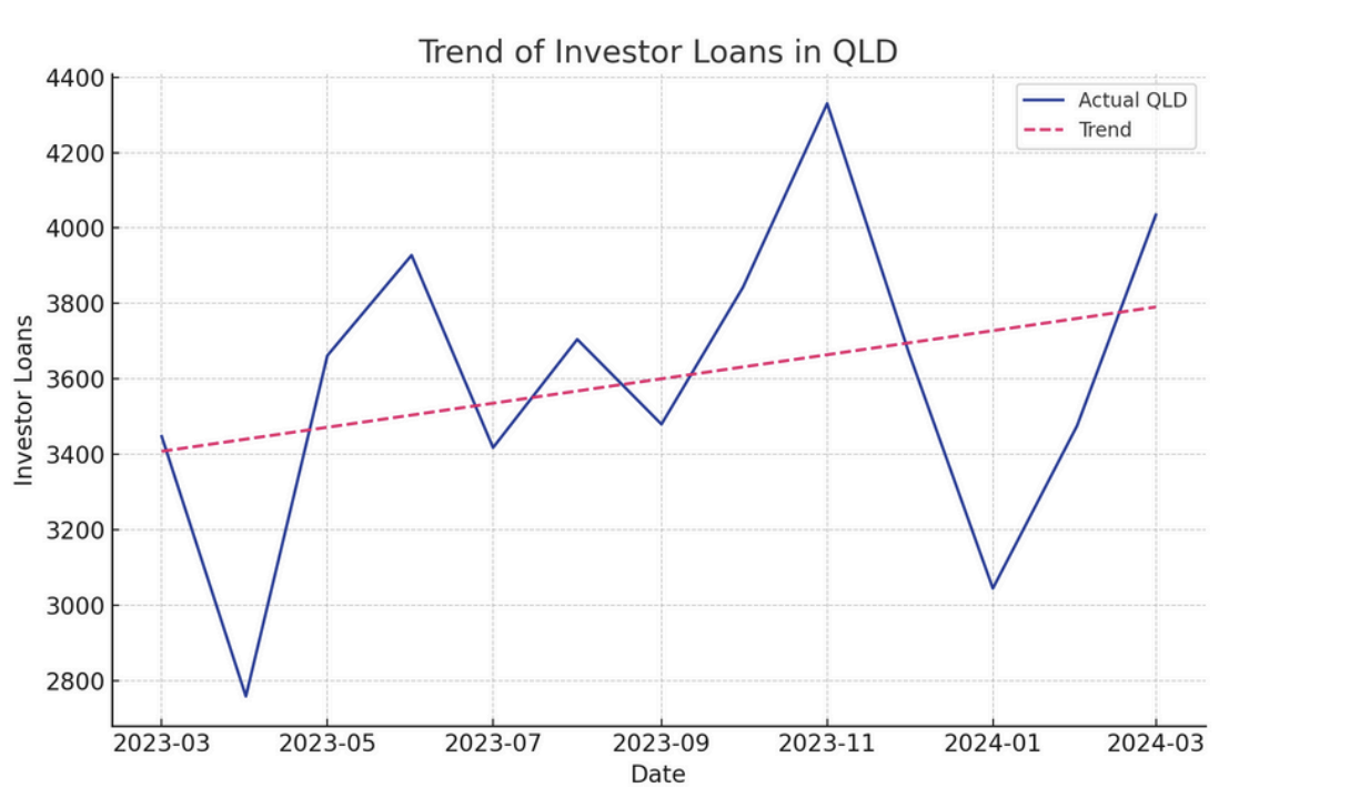Over the last three months, investor loans in QLD totalled 10,556, resulting in an annualised figure of 42,224.