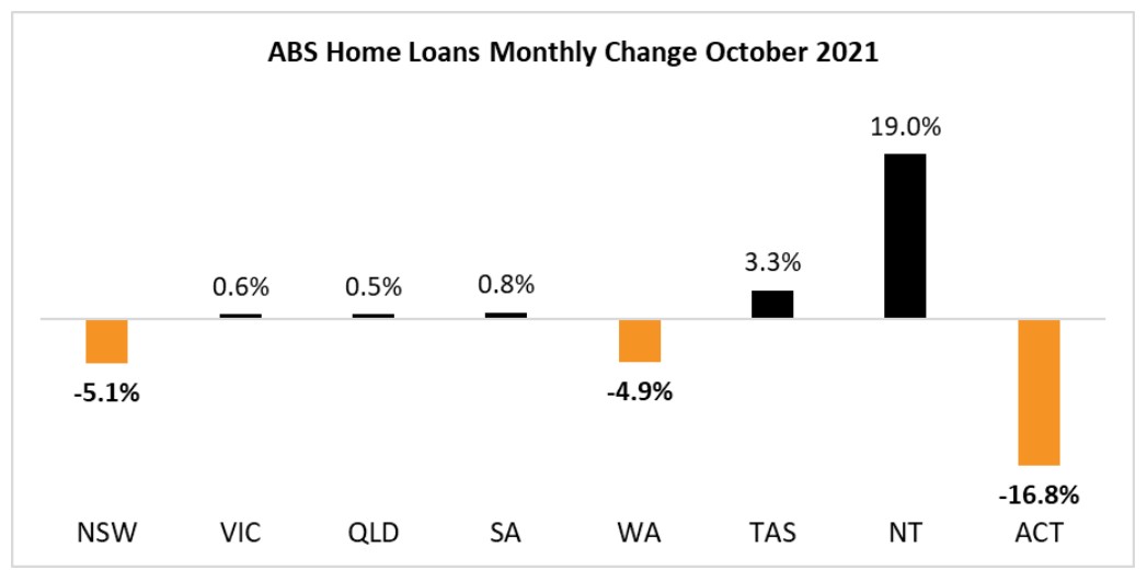 NSW, WA, and ACT reported sharp falls in lending activity over October with the other states recording positive but mostly modest outcomes.